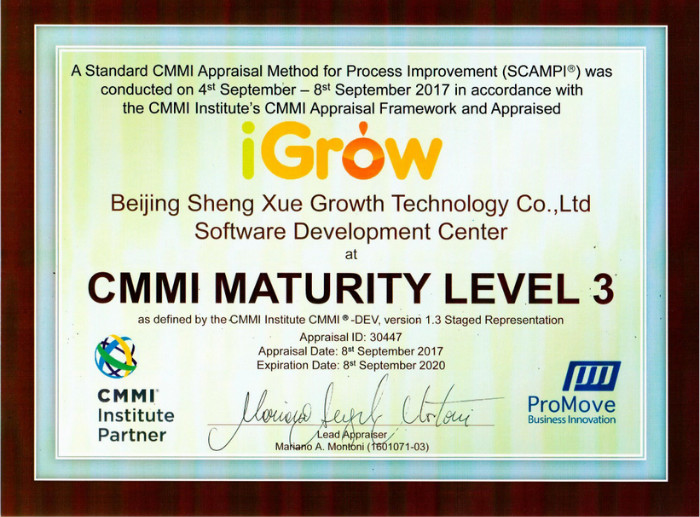 北京盛學(xué)成長科技有限公司成立于2011年1月,擁有高新技術(shù)企業(yè)、軟件企業(yè)、CMMI三級認證等資質(zhì),以及軟件著作權(quán)